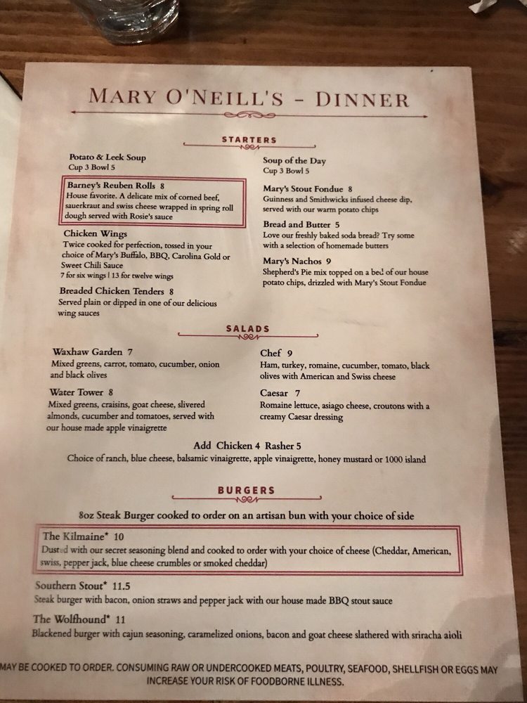 Welcome to Mary O'Neill's, a cozy restaurant located in downtown Waxhaw, NC. Known for its friendly service and delicious food, Mary O'Neill's offers a variety of options for every palate. From bangers and mash to fish and chips, customers rave about the flavorful dishes and generous portion sizes. The outdoor patio provides a spacious and inviting setting to enjoy your meal, while the attentive staff ensures a pleasant dining experience. Don't miss out on trying the Ruben rolls or the fried pickles for a tasty start to your meal. With options for vegan diners and a welcoming atmosphere for groups and families, Mary O'Neill's is a must-visit destination in Waxhaw. Make sure to check out their Friday and Saturday nights for a lively atmosphere and delicious drinks at the full bar. Experience the charm and hospitality of Mary O'Neill's for yourself by visiting at 116 W North Main St.